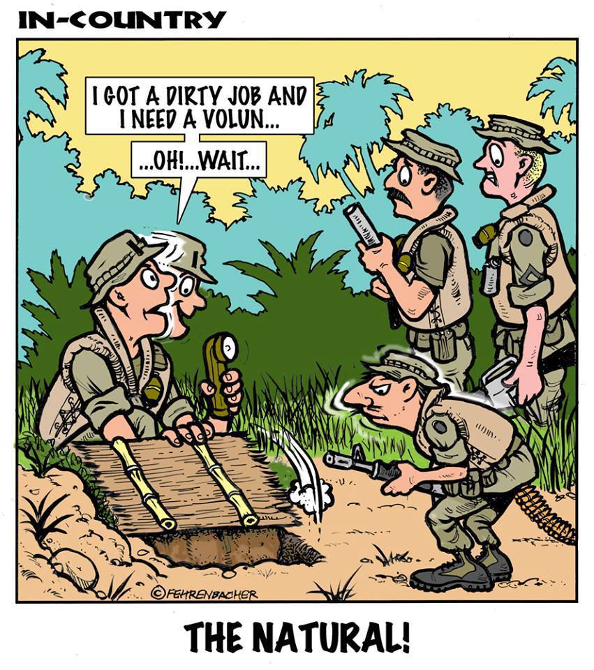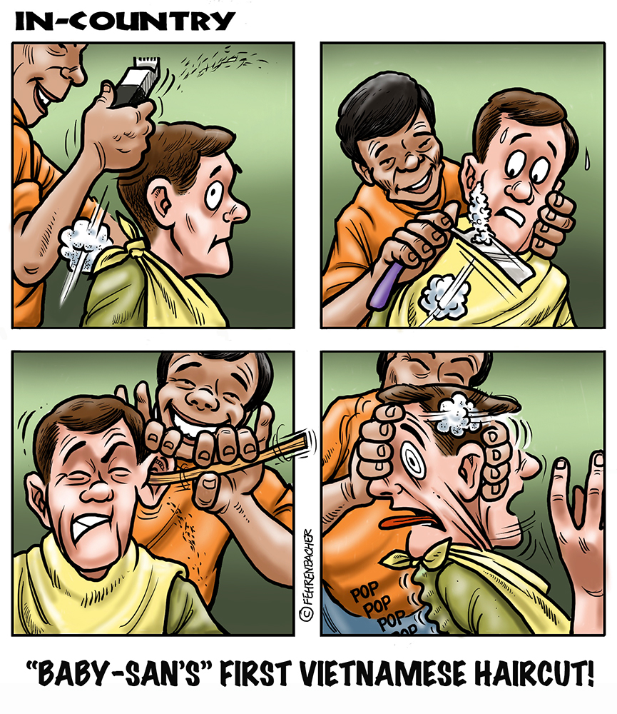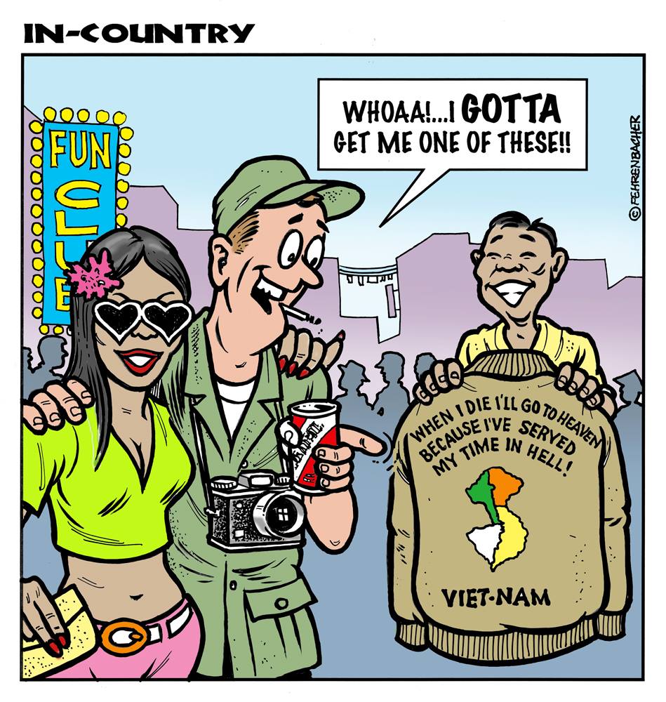 Phil enlisted in the Army in 1965 where he served for years in Vietnam.  He became a graphic designer and has worked for the state of Oregon for 26 years.  He retired in 2003 and started the Cartoon "In-Country".  The cartoons reflect his experiences during his tour of duty in South Vietnam.